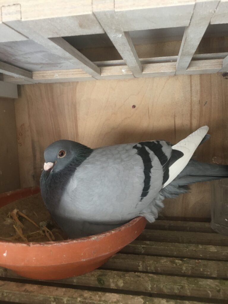 aangenaam verrast: zijn 1 ste getekende blauwe witpen duivin NL-18-5104232 zat daar in de spoetnik
